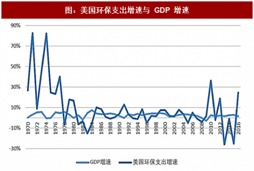 图:美国环保支出增速与 GDP 增速(来源:观研天下)