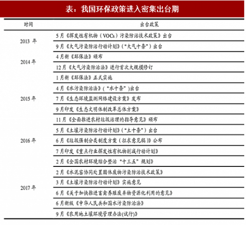 表:我国环保政策进入密集出台期(来源:观研天下)