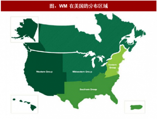 图:WM 在美国的分布区域(来源:观研天下)